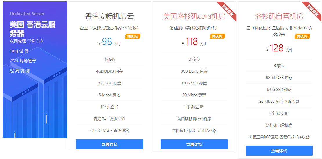 洛杉矶三网GIA高防vps